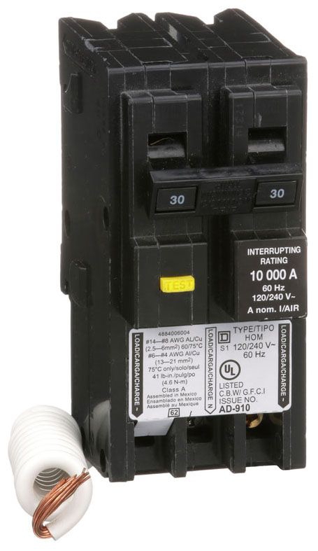 COMMON TRIP TYPE 2 INCH WIDTH X 2.98 INCH DEPTH X 3.13 INCH HEIGHT SIZE LOAD CENTER USED ON 12 TO 4 AWG (ALUMINUM) 14 TO 6 AWG (COPPER) WIRE SIZE UL APPROVAL 120/240 VOLT AC VOLTAGE RATING PLUG-IN MOUNTING 10 KILOAMP INTERRUPTING RATING 30 AMP CURRENT RATING 2 POLE(S) SCREW CLAMP TERMINAL TYPE 6 MILLIAMP TRIP SENSITIVITY HOMELINE[TM] BRAND ROHS COMPLIANT AMBIENT TEMPERATURE RATING 104 DEG F APPLICATION HEATING AIR CONDITIONING REFRIGERATION